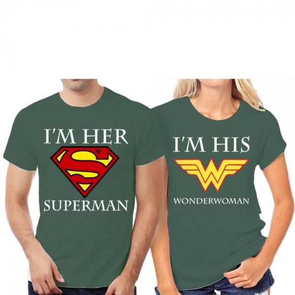 Superman and Wonderwoman Green T-Shirt